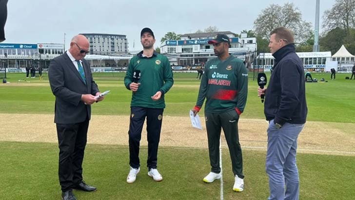 ইংল্যান্ডের মাটিতে আয়ারল্যান্ডের বিপক্ষে তৃতীয় ও শেষ ওয়ানডেতে টস হেরে ব্যাটিংয়ে বাংলাদেশ। চোটের কারণে শেষ ওয়ানডে থেকে ছিটকে গেছেন সাকিব আল হাসান।
