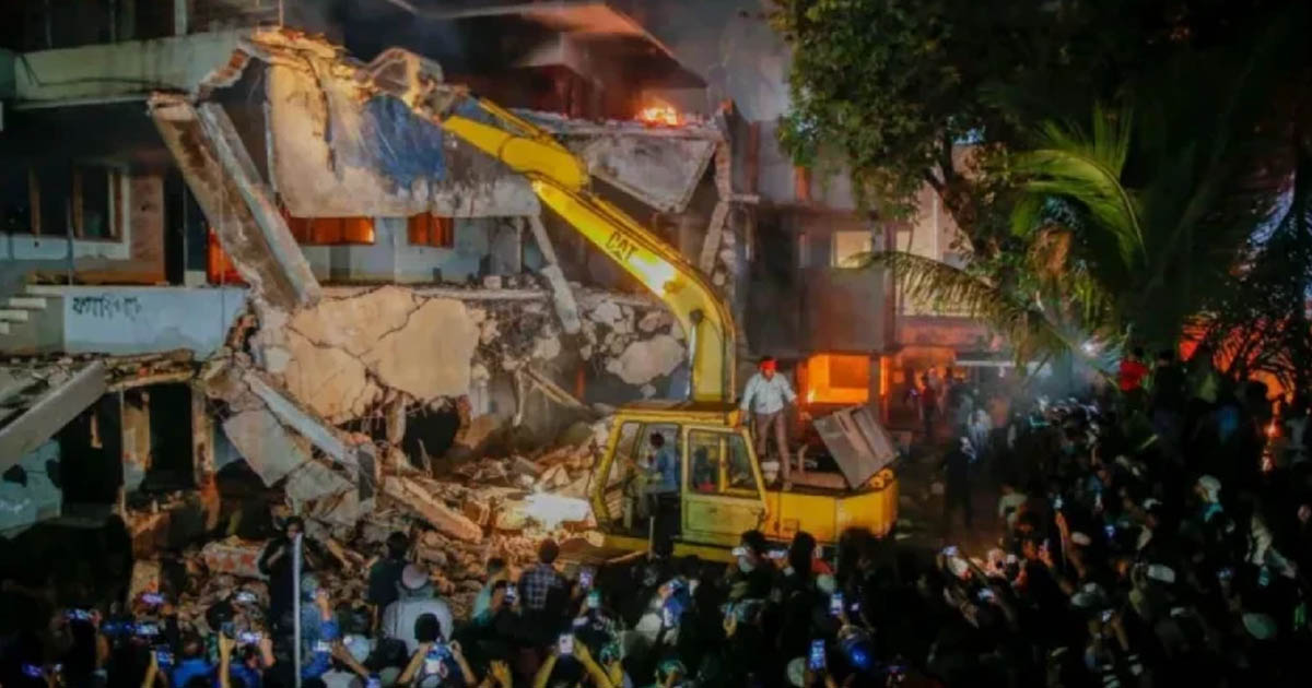 বুধবার রাতে ক্ষমতাচ্যুত শেখ হাসিনার অনলাইনে ভাষণ দেয়াকে কেন্দ্র করে বাড়িটিতে অগ্নিসংযোগ-ভাঙচুর করে ছাত্র-জনতা।