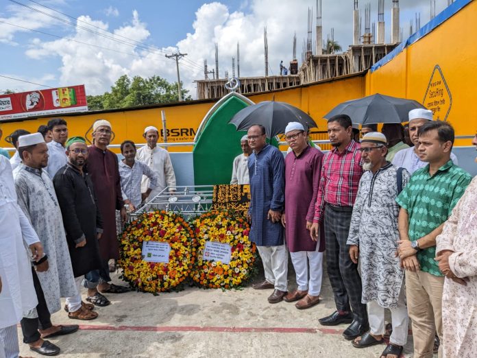 মরহুমের কবরে পুষ্পস্তবক অর্পণ করছেন চট্টগ্রাম প্রেসক্লাব, চট্টগ্রাম মেট্রোপলিটন সাংবাদিক ইউনিয়ন, রাউজান প্রেসক্লাবের নেতৃবৃন্দ।